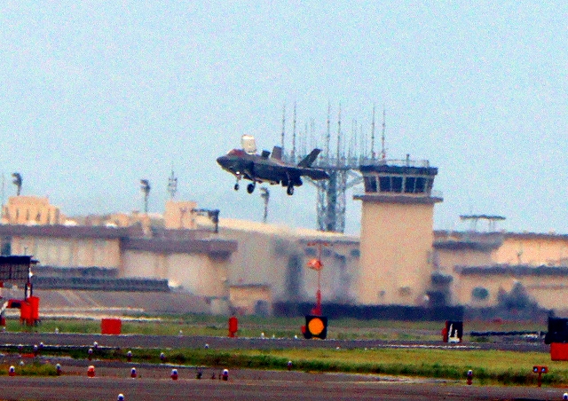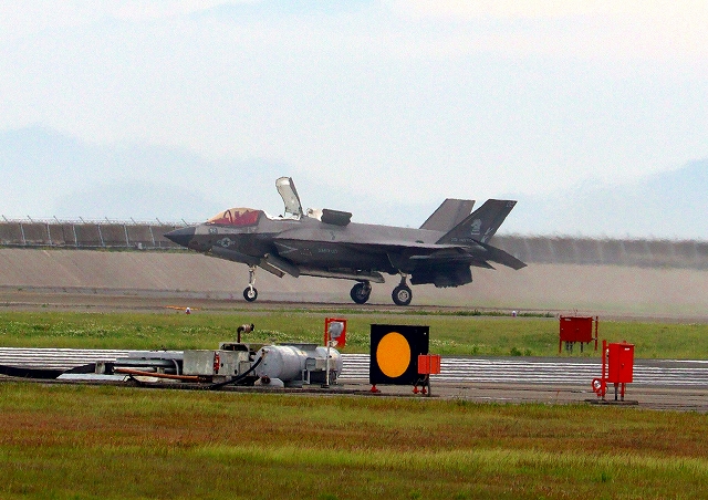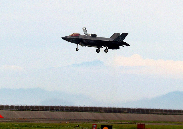 米海兵隊 F-35B ライトニングⅡ 戦闘機(岩国基地)、CE、08番機が着陸 |