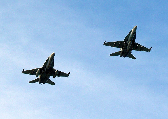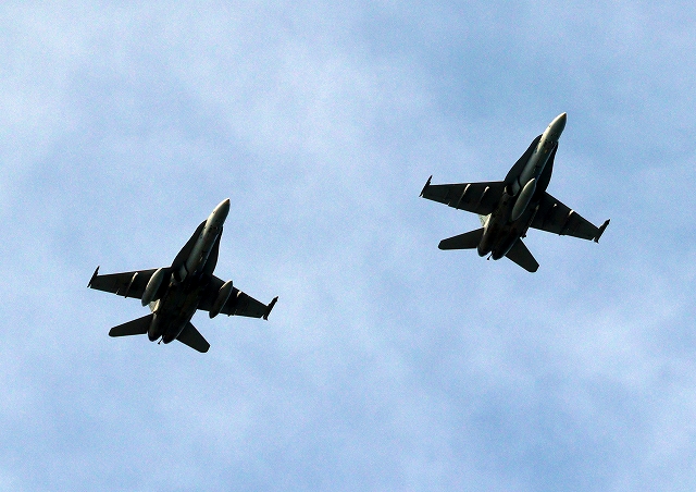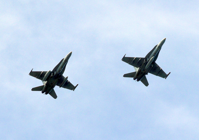 米海兵隊 F/A-18C/D ホーネット 戦闘攻撃機(岩国基地)、WK、14番機、09番機が2機編隊で帰還 |