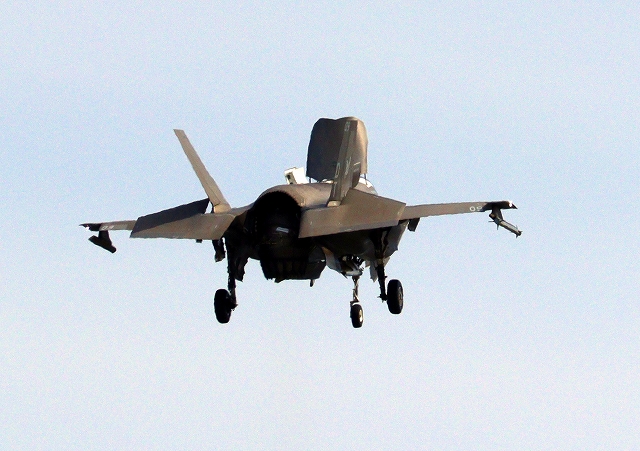 米海兵隊 F-35B ライトニングⅡ 戦闘機(岩国基地)、DT、09番機が着陸 13時40分に離陸した機。48分間の飛行でした。 離陸の写真も撮っていますが、写真の数が多いのでアップしていません。 |