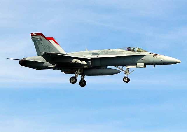 米海兵隊 F/A-18C ホーネット 戦闘攻撃機(岩国基地)、WK、05番機が着陸 |