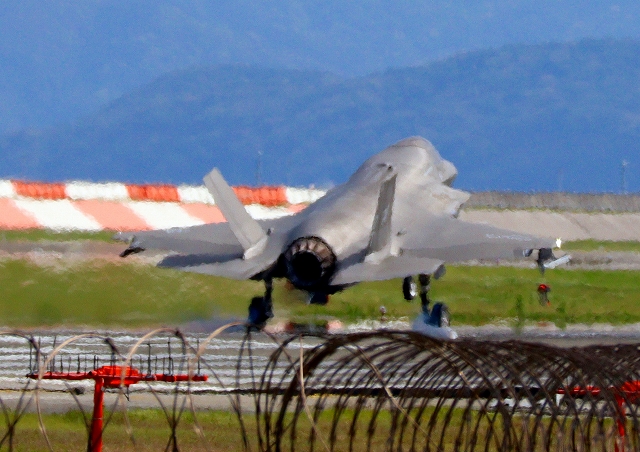 米海兵隊 F-35B ライトニングⅡ 戦闘機(岩国基地)、DT、11番機が着陸 13時48分に離陸した機。51分間の飛行でした。 離陸の写真も撮っていますが、写真の数が多いのでアップしていません。 |