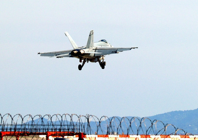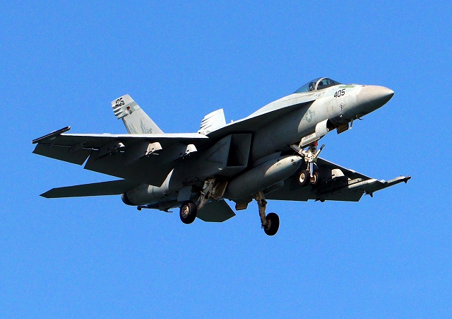 米海軍艦載機 F/A-18E スーパーホーネット 戦闘攻撃機(岩国基地)、NF、404番機が帰還 |