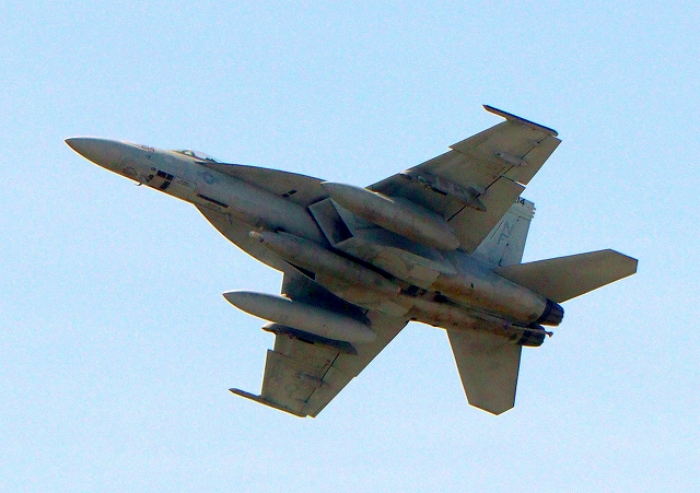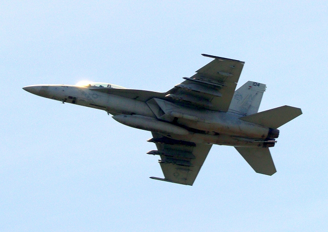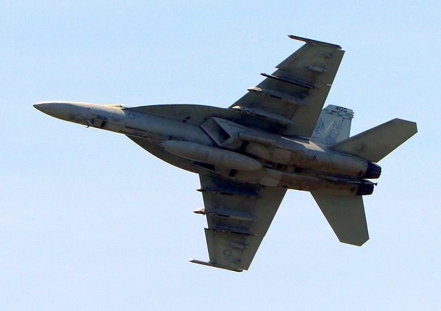 米海軍艦載機 F/A-18E スーパーホーネット 戦闘攻撃機(岩国基地)、NF、405番機が離陸 |