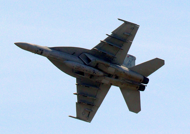 米海軍艦載機 F/A-18E スーパーホーネット 戦闘攻撃機(岩国基地)、NF、214番機が離陸 |