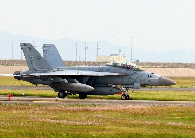 米海軍艦載機 F/A-18F スーパーホーネット 戦闘攻撃機(岩国基地)、NF、107番機 |