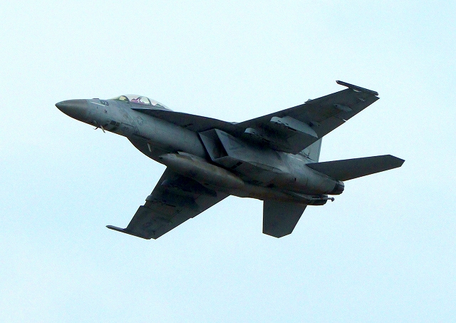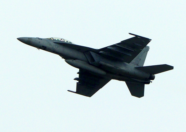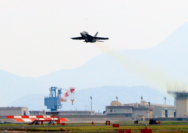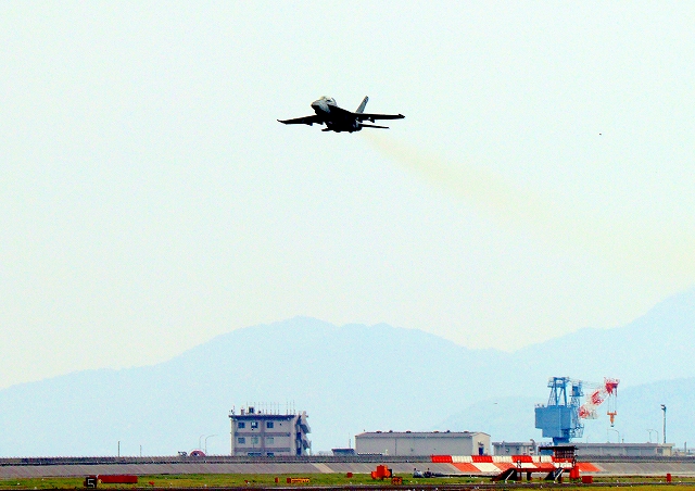 米海軍艦載機 F/A-18F スーパーホーネット 戦闘攻撃機(岩国基地)、NF、103番機が離陸 |