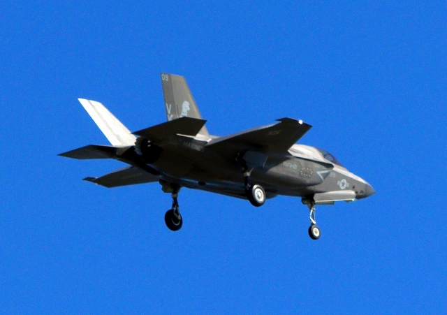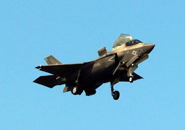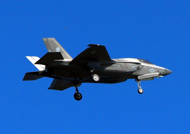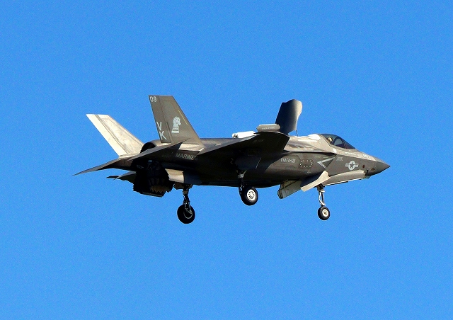 米海兵隊 F-35B ライトニングⅡ 戦闘機(岩国基地)、VK、09番機は旋回 |