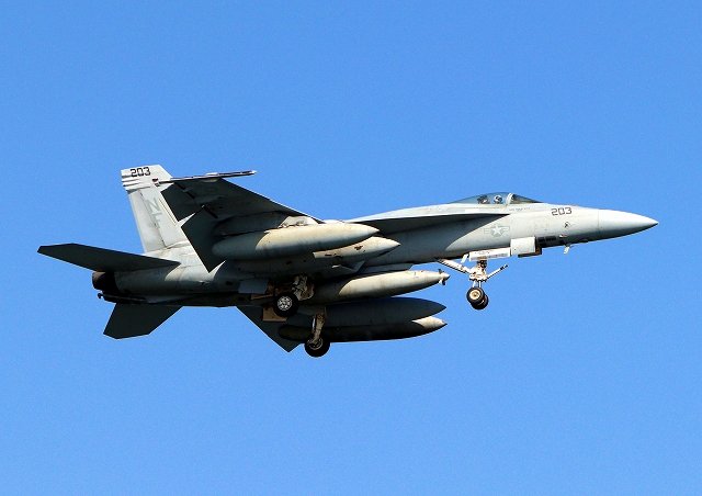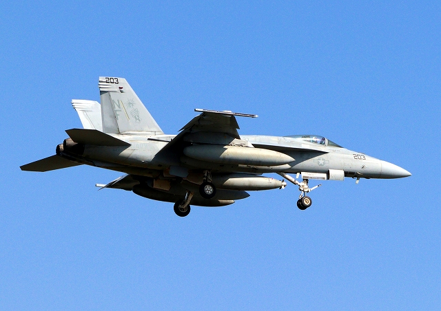米海軍艦載機 F/A-18E スーパーホーネット 戦闘攻撃機(岩国基地)、NF、203番機 |