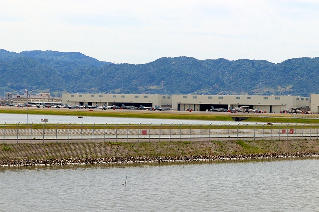 米海軍艦載機駐機場 聞けば、今日通常の離着陸やっているとのこと。 |