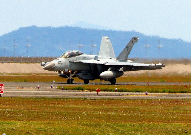 米海軍艦載機 EA-18G グラウラー 電子戦戦闘攻撃機(岩国基地)、NF、507番機が着陸 |
