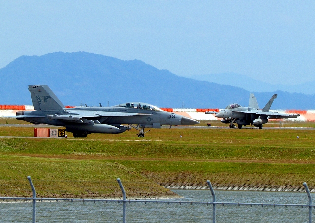 米海軍艦載機 EA-18G グラウラー 電子戦戦闘攻撃機(岩国基地)、NF、501番機、507番機が帰還 |