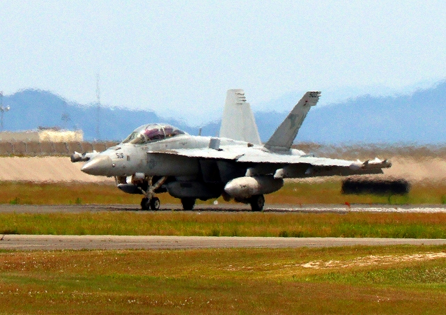 米海軍艦載機 EA-18G グラウラー 電子戦戦闘攻撃機(岩国基地)、NF、506番機が着陸 |