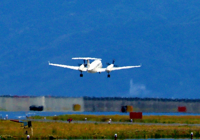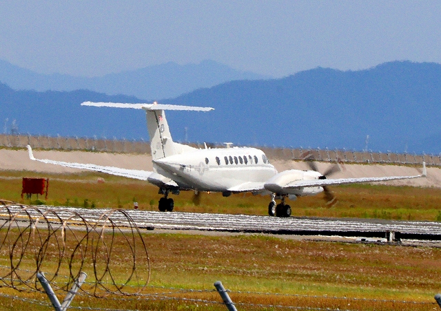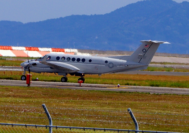 米海兵隊 UC-12W ヒューロン 軽輸送機(普天間基地)、0111番機が離陸 |
