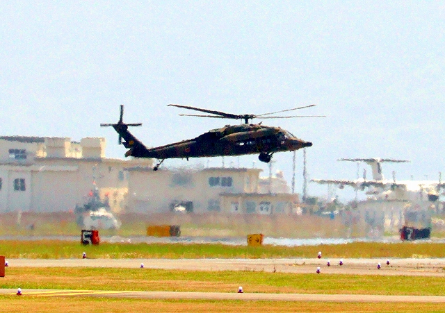 航空自衛隊 UH-60J 救難ヘリが着陸 |