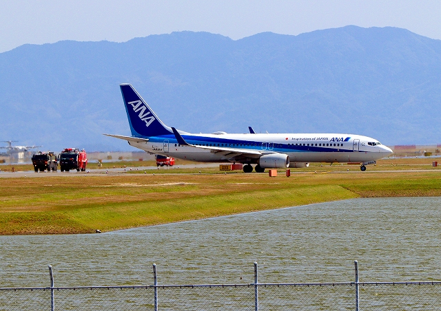 全日空旅客機定期便は30分遅れで着陸 上空で旋回しながら、待っていたとさ。 |