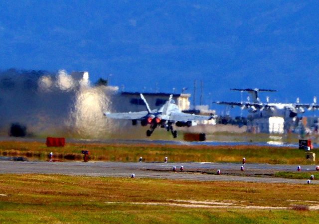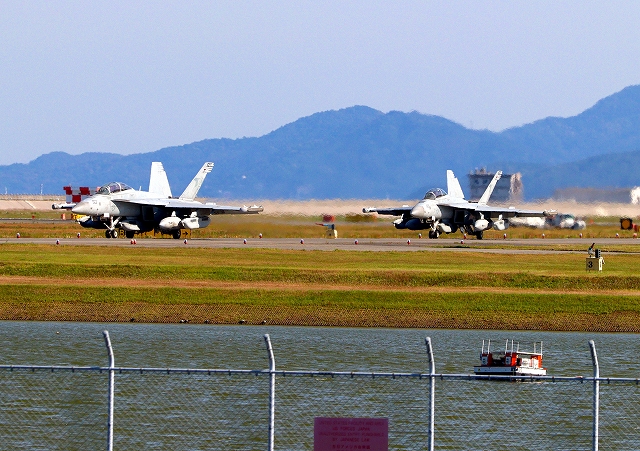 米海軍艦載機 EA-18G グラウラー 電子戦戦闘攻撃機(岩国基地)、NF、503番機が離陸 |
