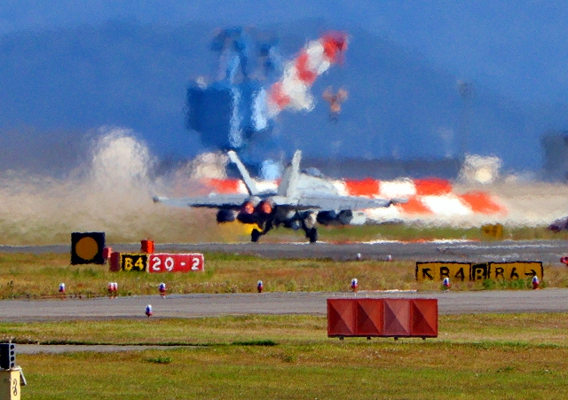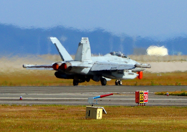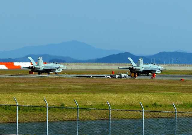 米海軍艦載機 EA-18G グラウラー 電子戦戦闘攻撃機(岩国基地)、NF、505番機が離陸 |