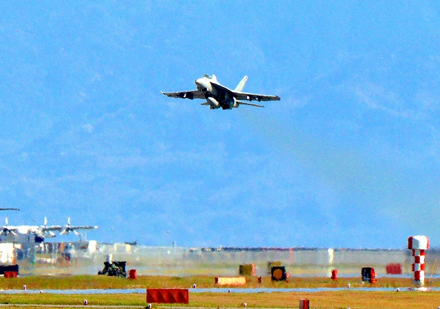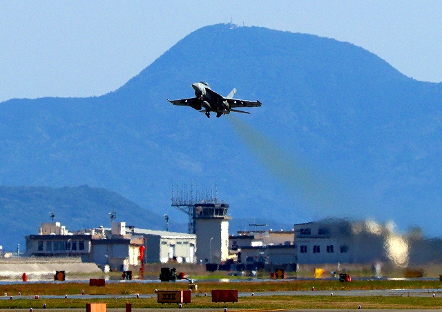 米海軍艦載機 F/A-18E スーパーホーネット 戦闘攻撃機(岩国基地)、NF、202番機が離陸 17時30分に厚木基地に着陸した!と連絡ありました。2時間かかっています。通常1時間。どこに寄っていたのか?19時00分、岩国基地に向けて離陸したということです。 |