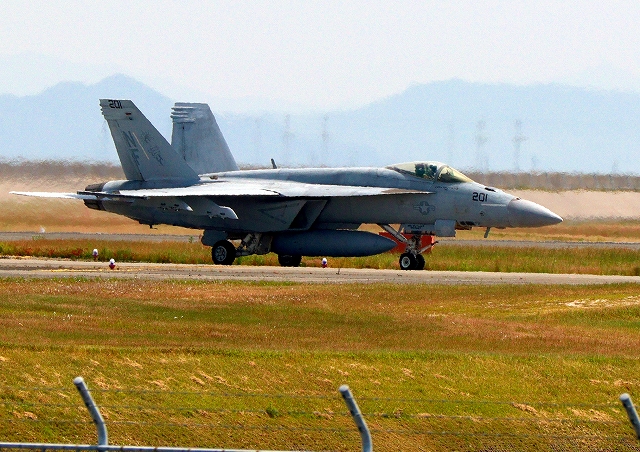 米海軍艦載機 F/A-18E スーパーホーネット 戦闘攻撃機(岩国基地)、NF、201番機 |