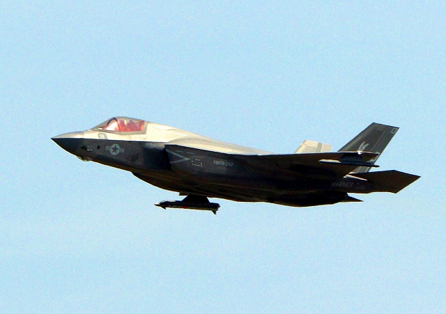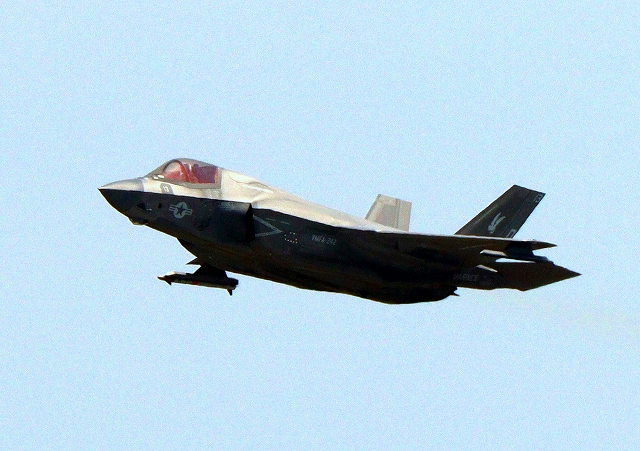 米海兵隊 F-35B ライトニングⅡ 戦闘機(岩国基地)、DT、13番機が離陸 |