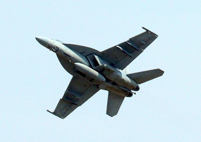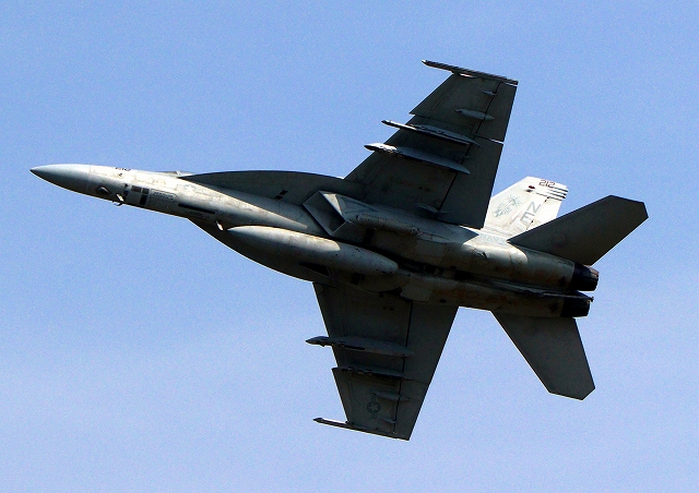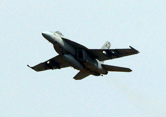 米海軍艦載機 F/A-18E スーパーホーネット 戦闘攻撃機(岩国基地)、NF、212番機が離陸 |