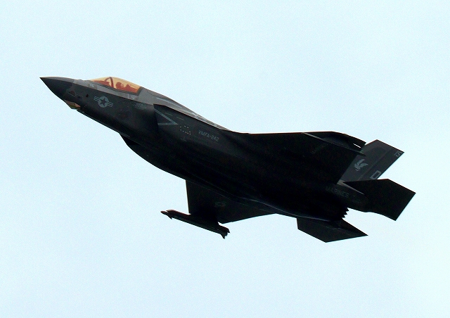 米海兵隊 F-35B ライトニングⅡ 戦闘機(岩国基地)、DT、15番機が離陸 |