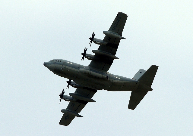 米海兵隊 KC-130J 空中給油機 スーパーハーキュリーズ(岩国基地)、QD 7923番機 |