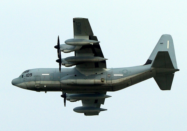 米海兵隊 KC-130J 空中給油機 スーパーハーキュリーズ(岩国基地)、QD 7109番機 |