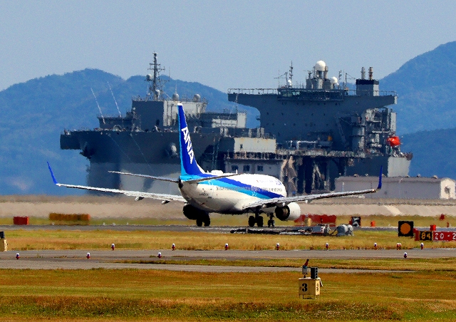 3674-2、2024年5月25日(土)遠征洋上基地艦 ミゲルキース、全日空旅客機定期便 離陸(11)~(20)