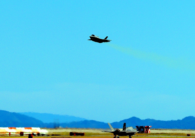 米海兵隊 F-35B ライトニングⅡ 戦闘機(岩国基地)、CE、05番機が離陸 |