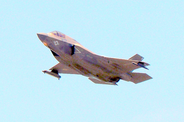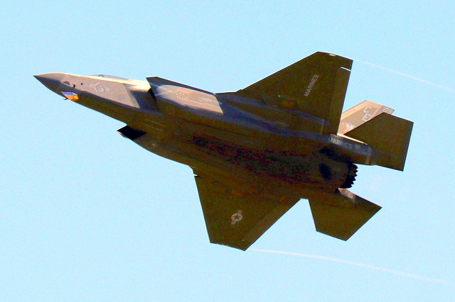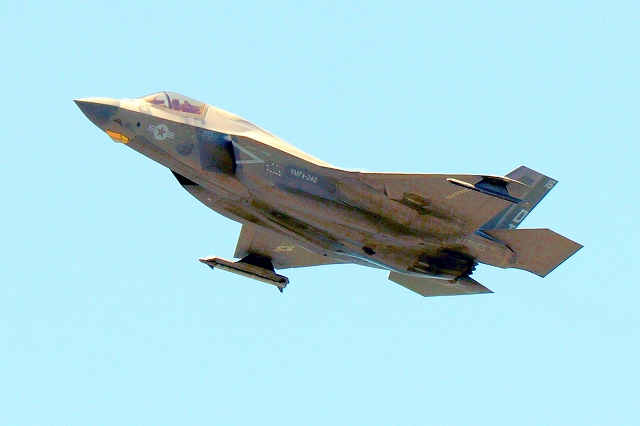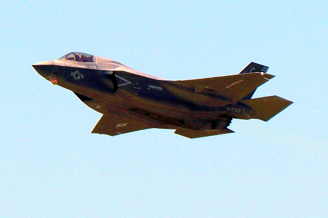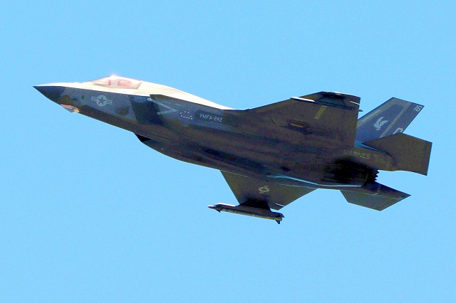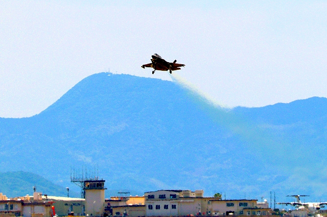 米海兵隊 F-35B ライトニングⅡ 戦闘機(岩国基地)、DT、13番機が離陸 |