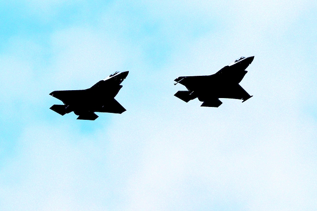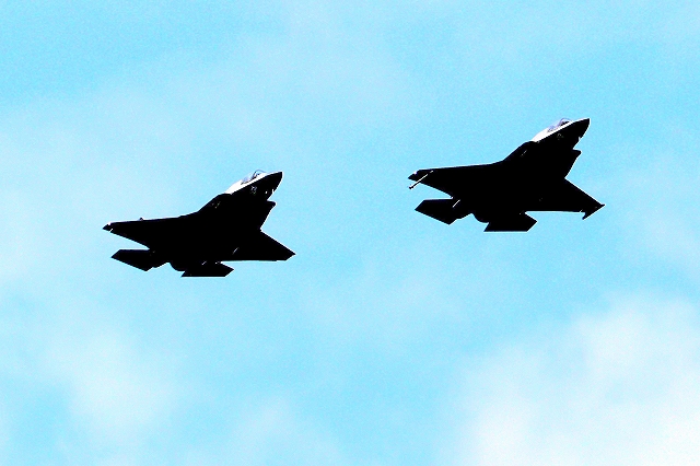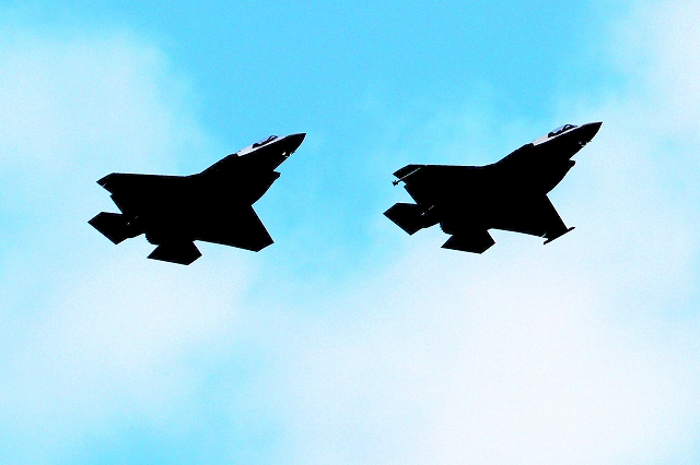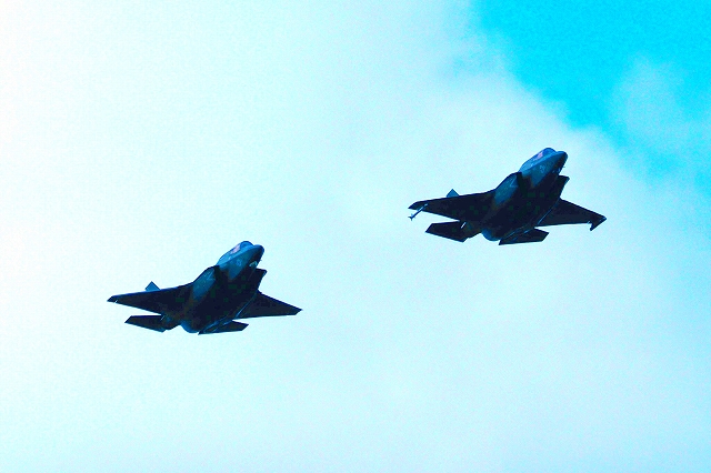 米海兵隊 F-35B ライトニングⅡ 戦闘機(岩国基地)、DT、13番機、08番機が2機編隊で帰還 |