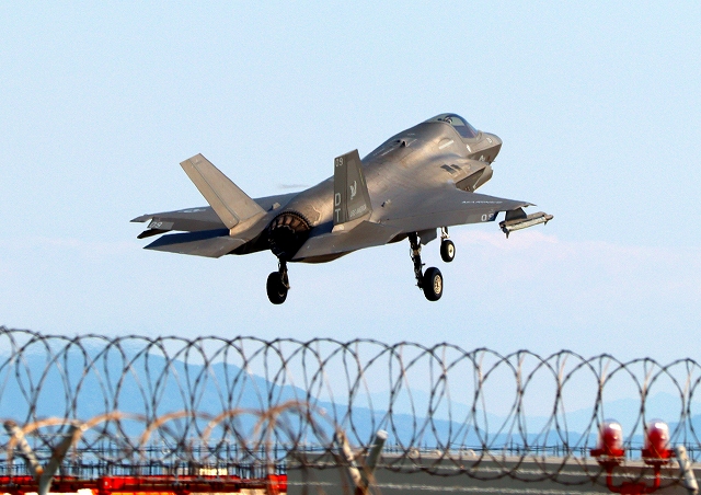 米海兵隊 F-35B ライトニングⅡ 戦闘機(岩国基地)、DT、09番機が着陸