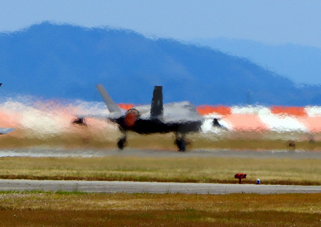 米海兵隊 F-35B ライトニングⅡ 戦闘機(岩国基地)、DT、13番機が離陸 |