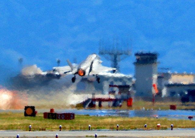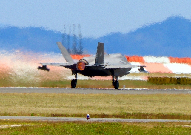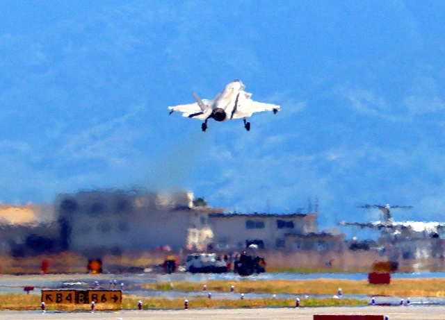 米海兵隊 F-35B ライトニングⅡ 戦闘機(岩国基地)、DT、15番機が離陸 |