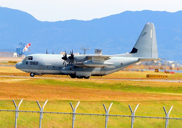 米海兵隊 KC-130J 空中給油機 スーパーハーキュリーズ(岩国基地)、QD 7982番機 |