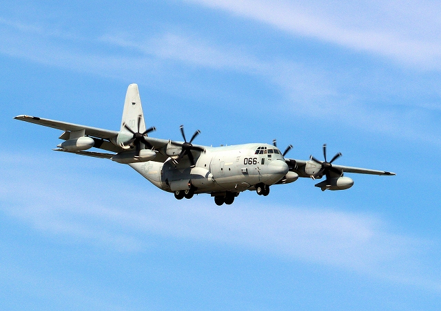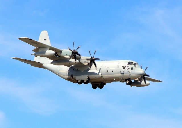 米海兵隊 KC-130J 空中給油機 スーパーハーキュリーズ(岩国基地)、QD 8066番機が帰還 |