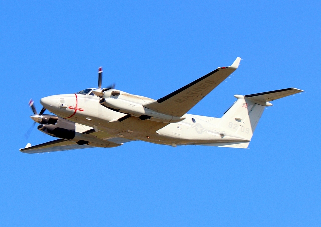 米海兵隊 UC-12W ヒューロン 軽輸送機(岩国基地)、8209番機が離陸 |