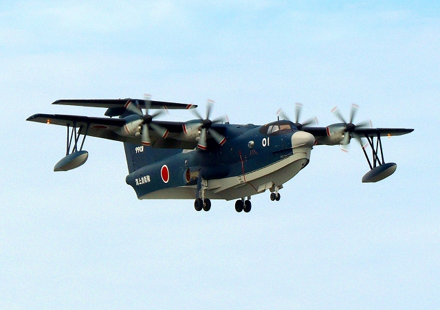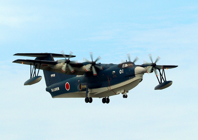 海上自衛隊 US-2 救難飛行艇(岩国基地)、9901番機が旋回(2周目) |