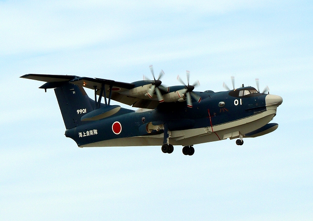 海上自衛隊 US-2 救難飛行艇(岩国基地)、9901番機が旋回(1周目) |