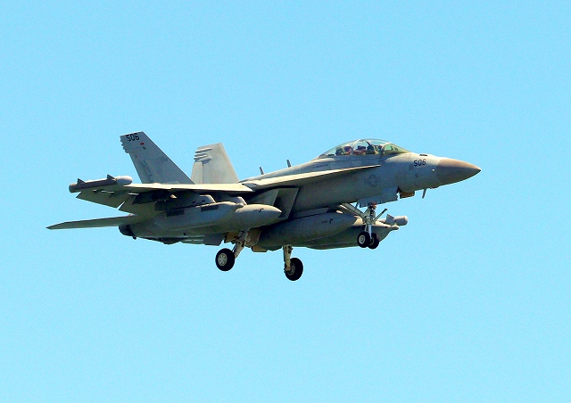 米海軍艦載機 EA-18G グラウラー 電子戦戦闘攻撃機(岩国基地)、NF、506番機が着陸 |