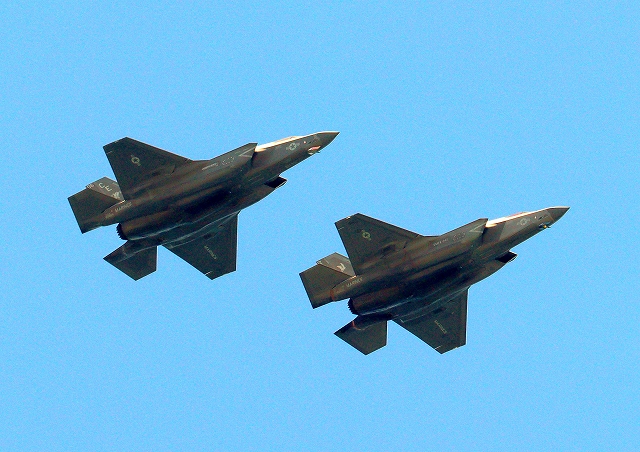米海兵隊 F-35B ライトニングⅡ 戦闘機(岩国基地)、DT、09番機、08番機が2機編隊で帰還 |