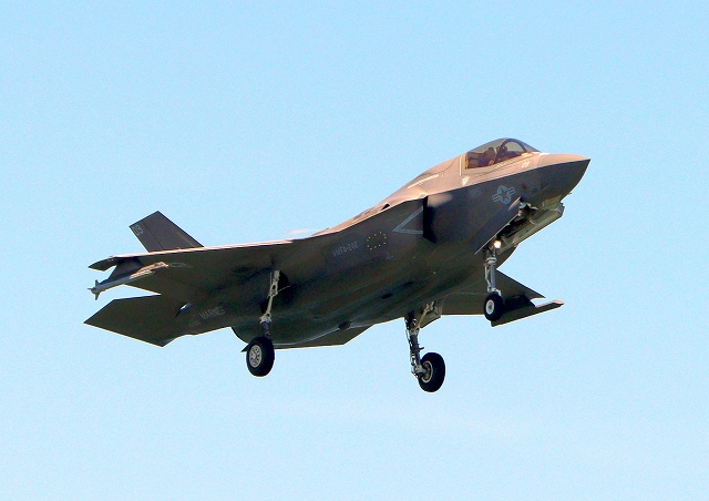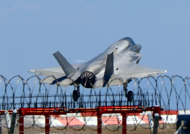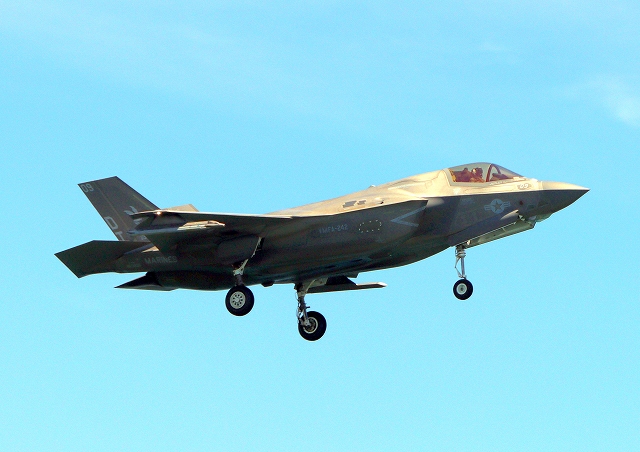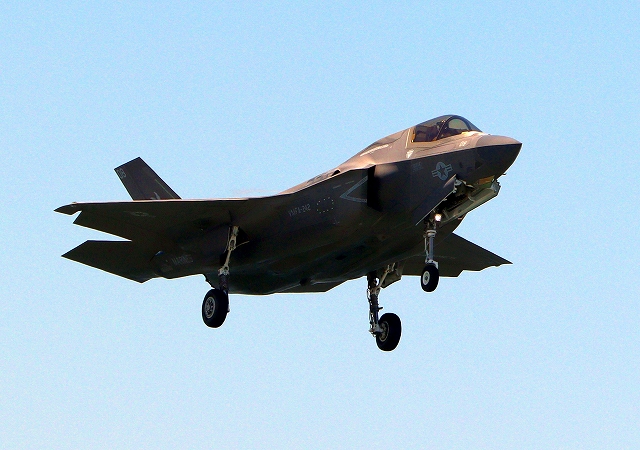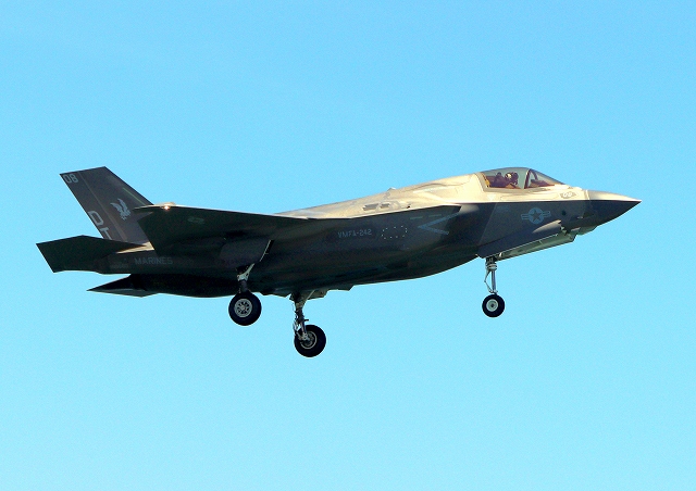 米海兵隊 F-35B ライトニングⅡ 戦闘機(岩国基地)、DT、08番機が着陸 |