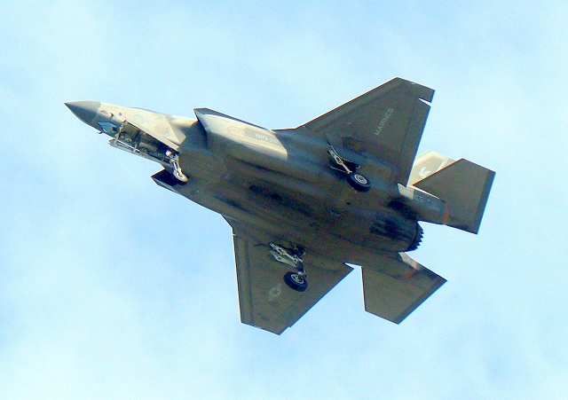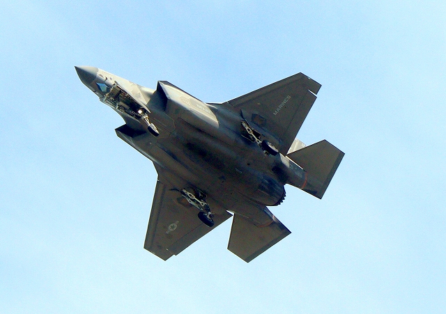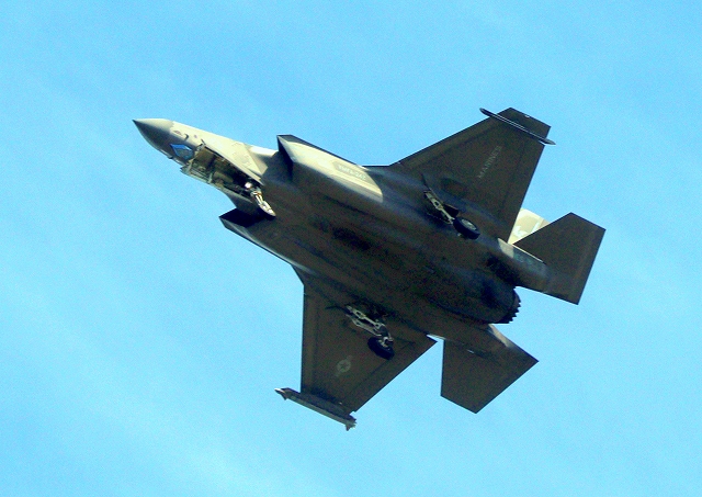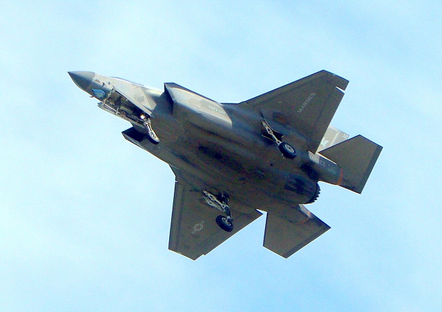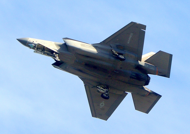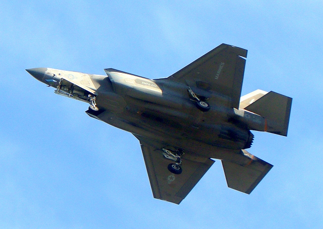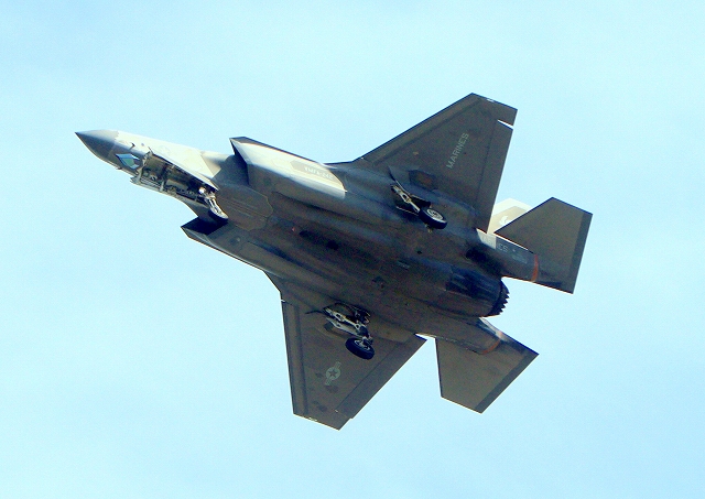 米海兵隊 F-35B ライトニングⅡ 戦闘機(岩国基地)、DT、11番機が旋回(1周目) |