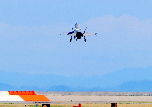 米海兵隊 F-35B ライトニングⅡ 戦闘機(岩国基地)、DT、12番機が着陸 |