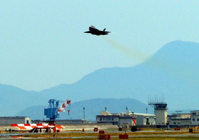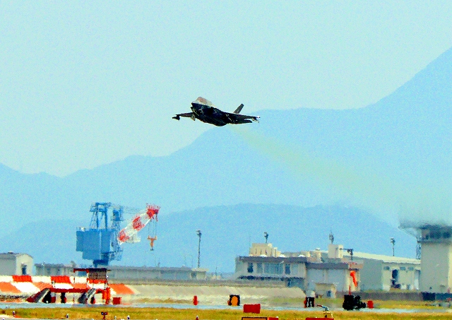 米海兵隊 F-35B ライトニングⅡ 戦闘機(岩国基地)、CE、08番機が離陸 |