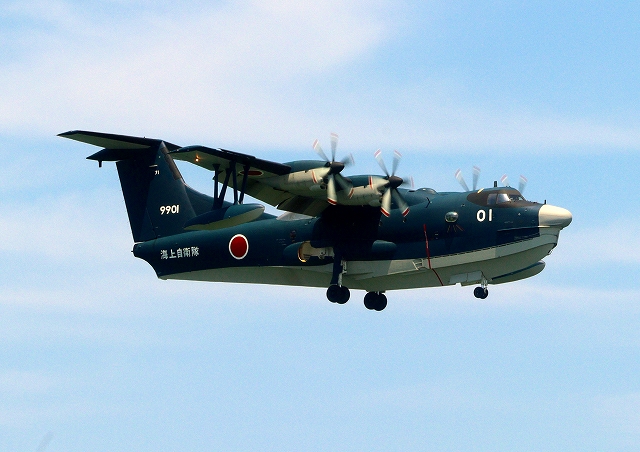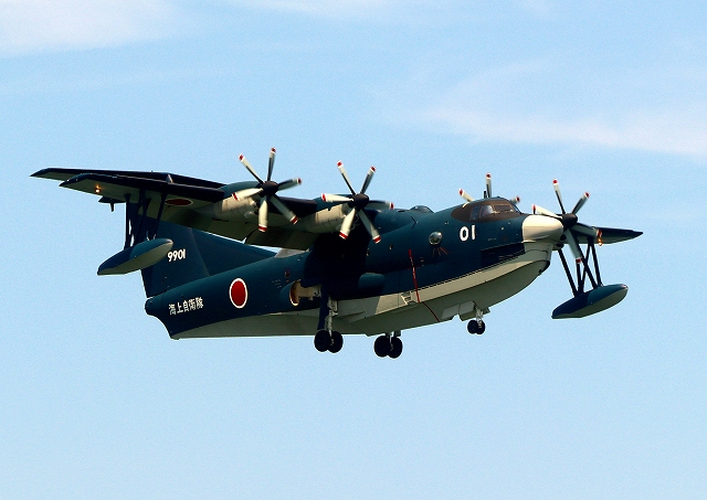 海上自衛隊 US-2 救難飛行艇(岩国基地)、9901番機が旋回 |