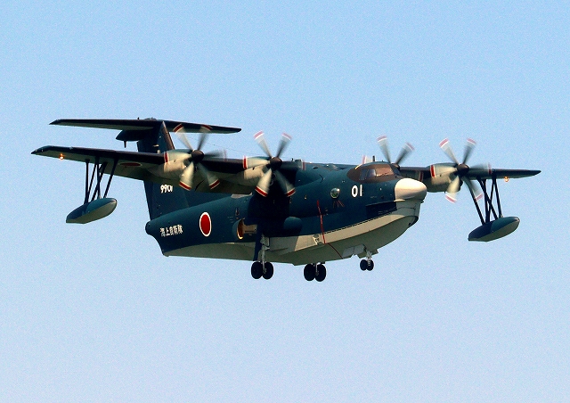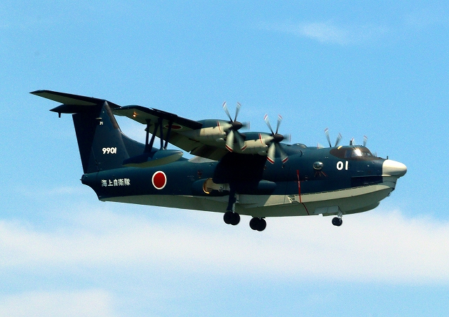 海上自衛隊 US-2 救難飛行艇(岩国基地)、9901番機が旋回 |