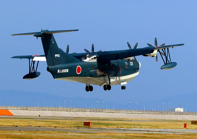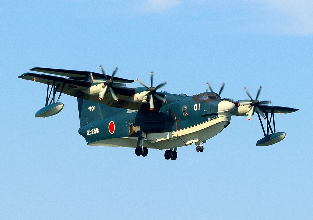 海上自衛隊 US-2 救難飛行艇(岩国基地)、9901番機が旋回 |