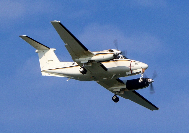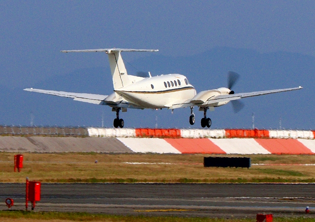 米海兵隊 UC-12F 軽輸送機(岩国基地)、163554番機が着陸 |